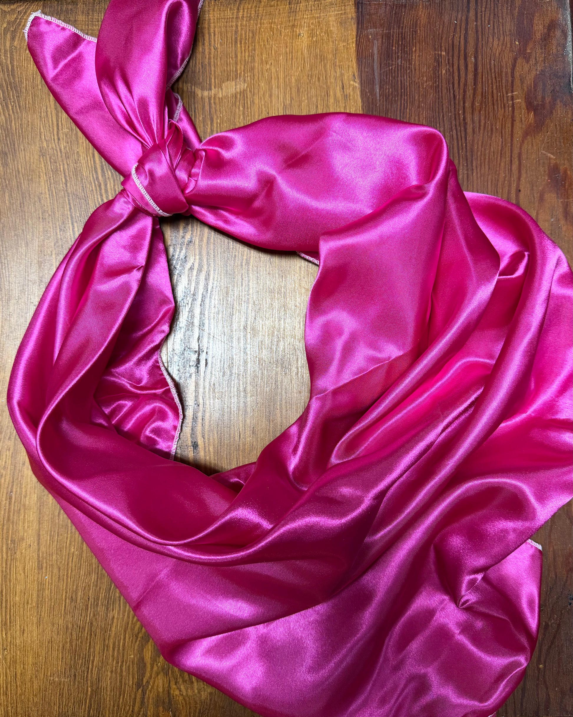 This 40” wild rag gives all the deep, rich fuchsia vibes with a white border.